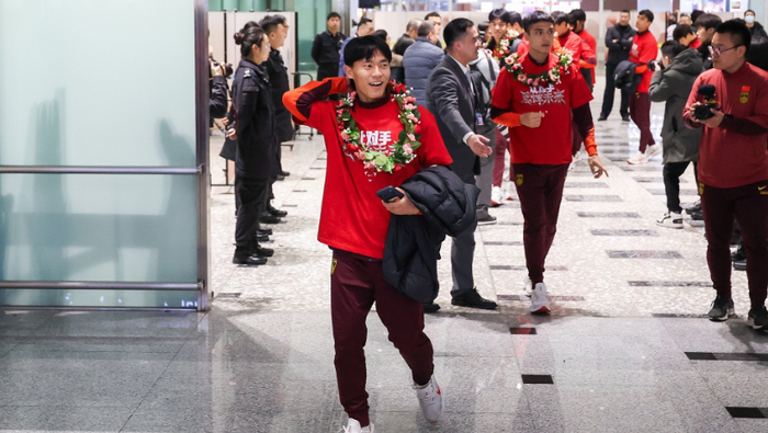 结束所有比赛之后,中国队已在本周二下午抵达北京大兴国际机场,众多球迷一起在机场迎接载誉而归的球队,不过王钰栋、刘浩帆、鲍盛鑫、张瑷晖、霍深坪等5名球员前往迪拜,跟在那冬训的俱乐部会合,留洋两将徐彬、王博豪则已直接分赴英国、荷兰。